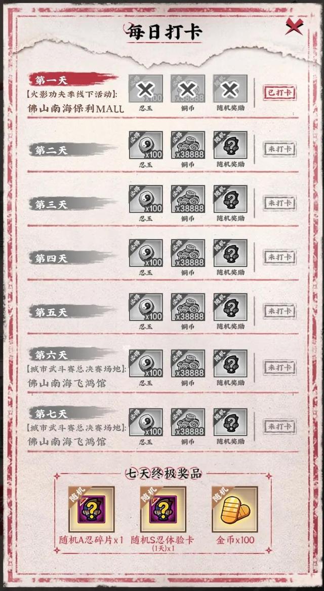 小贴士:忘了可以消耗时光逆转卡进行补签,商城直购买就不要买了啦~另外功夫揭秘也要每天打卡一下哈~有金币碎片奖励!