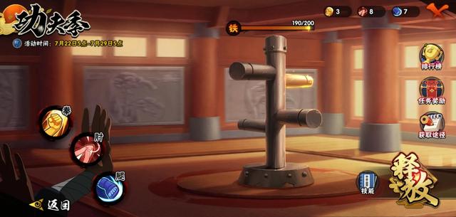 强化试炼: 每击毁一个木人桩,即可获得一个奥义点,木人桩自毁或被宁次击毁会增加宁次奥义点,注意时间要100s内完成!