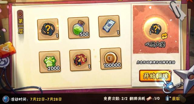 一共20层,其中1~4、5~20 层心愿奖池不同,赠送2次免费翻牌机会,活动结束后剩余的翻牌券会折算为声望返还!