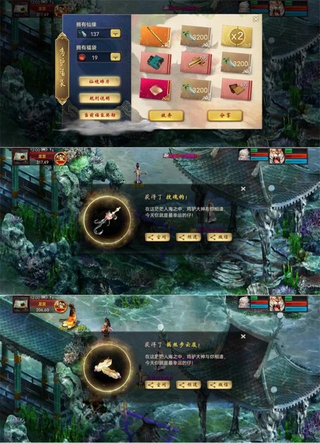福袋开出的三件随机神兵,貌似都是垫底的哦