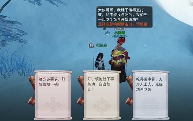 比如在华山上,很多玩家会触发一个“华山小师妹”的奇遇任务,这个小师妹形象并不讨喜,还叽叽歪歪个不停、要你做这做那,此时你大可以揍她一顿,但如果选择忍住脾气顺从她,后面会体验更多隐藏的剧情秘密哦!