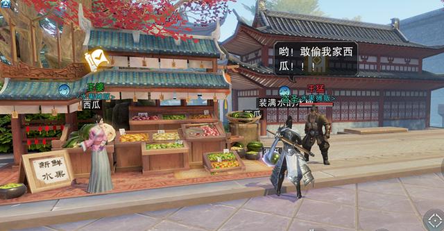 游戏还设计了一些特色NPC,比如只在夜晚出现的飞贼、采花贼,击杀他们不会获得罪恶值。还有一些“碰瓷”NPC,比如青楼里纠缠玩家的女子,要么乖乖交钱、要么大打出手,你会如何选择?