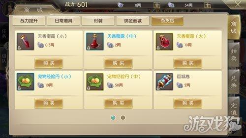 商城中有杂货铺,这里有卖宠物经验丹的,还有回城卷轴和加血的等等。如果你想让你的宠物更快的达到一定的等级,你可以在这里购买宠物经验丹。然后还有的就是时装,在这里找到自己喜欢的宠物或者时装,进行购买图纸。