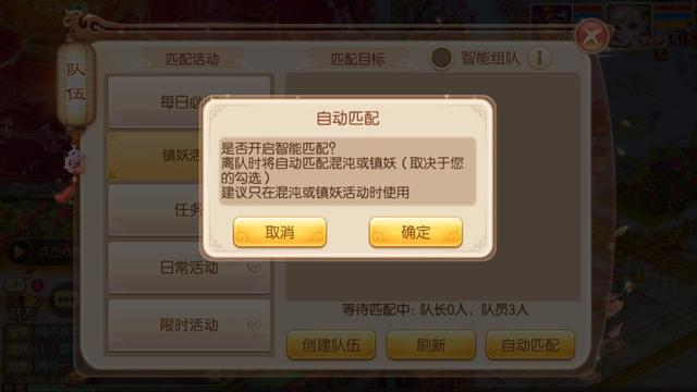选择开始匹配之后会弹出推荐的一些组队任务,然后建议新手玩家选择“智能组队”功能。