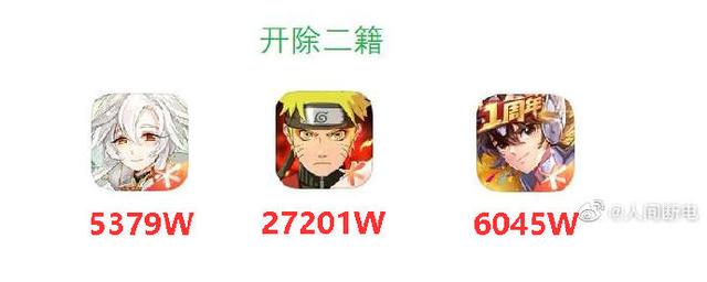 腾讯的三款手游,《食物语》、《火影忍者》、《圣斗士星矢》。我也不知道为啥要开除二籍,据说是和这三款手游的用户和二次元圈子重合度不高有关……当然也有可能仅仅是因为这是腾讯的手游。