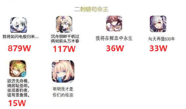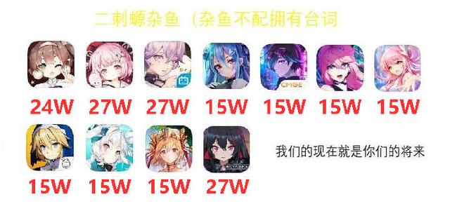杂鱼不配拥有台词,也不配被介绍。其中不少都是迎合二次元热潮,披着纸片人老婆外皮的产物。但起码还能上榜,说明就算是杂鱼,曾经也是有两把刷子的,“我们的现在就是你们的未来”。