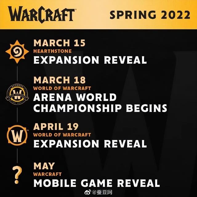 根据具体消息,暴雪将在2022年的3月份放出炉石的新资料片和开始WOW的比赛,在4月份推出WOW的新资料片,5月份推出《魔兽》手游。
