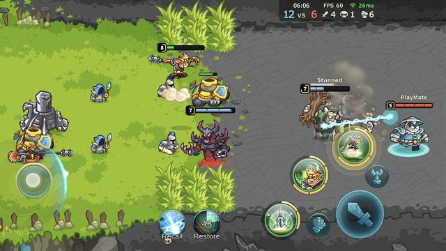 游戏简介:结合了街机格斗的爽感以及MOBA博弈的竞技感,刚好比传统Moba节奏快,又比乱斗游戏更有策略性,一局大约在10分钟左右。游戏玩法为横向地图单路推塔模式,摧毁敌⽅基地获胜,同样具备英雄等级成长、装备等MOBA核心系统。