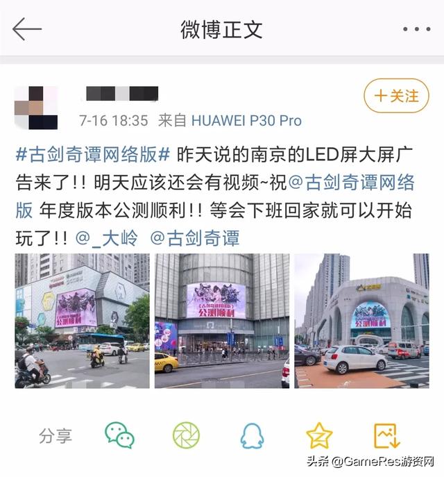 正是得益于游戏与玩家间根深蒂固的情感羁绊,本次在《古剑奇谭OL》年度版本上线之际,许多忠实玩家为了庆祝这一大事件,自发地进行了线下组织,自掏腰包在南京购买了多块户外LED屏庆祝新版本上线。