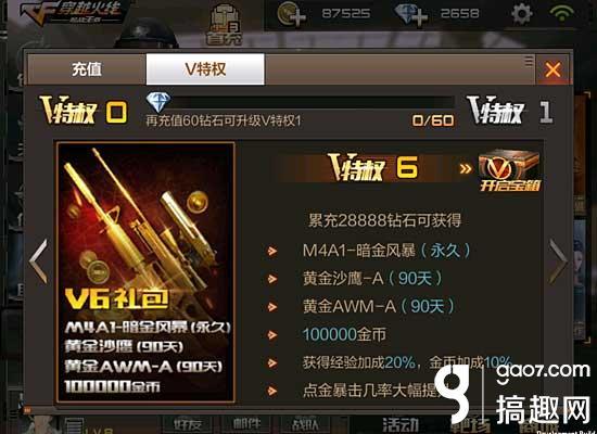 当我们充值达到一定额度,就能成为游戏VIP,享受不同的游戏特权。累积充值60钻,就能获得巴雷特(3天)等福利;VIP6还能得到M4A1-暗金风暴(永久)、黄金沙鹰-A(90天)、黄金AWM-A(90天)以及大量珍贵福利。如此拉风的黄金枪械,一定能让我们在战场中光彩闪耀。