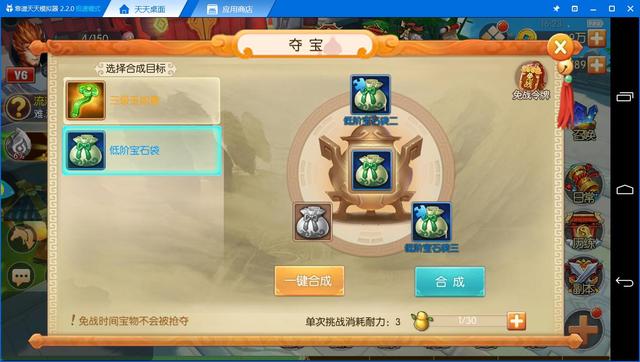 夺宝玩法是大圣归来手游中众多玩家再熟悉不过的玩法了,简单轻松,唯一的差距在于耐力丹存了多少。为了应对这次活动我可是存了20个耐力丹,完全不担心。并且夺宝刷出来的无论是宝石袋子还是玉如意都是相当有用的道具。