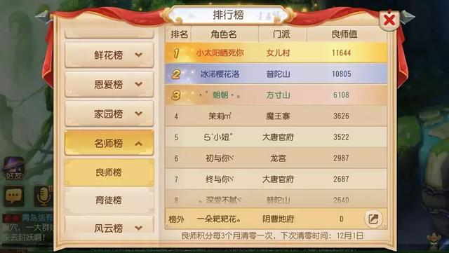 @罗马:听说良师榜的积分每三个月清零一次?大家看看我们区良师值排名第一的那个大佬,他有11644分,想知道这是什么概念吗?让我来告诉你们,就是从早到晚20个小时在线,被他催着疯狂升级,还发环给你点,承包了你的星宿护卫和28,剧情什么的都不会落下,基本上3、4天就能出师一个,这就是他,让我一生难忘的......师傅大大。