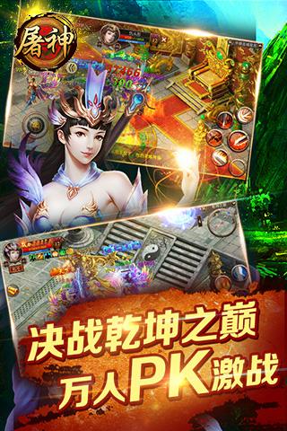 打造全新RPG即时战斗,《屠神》开启革新性无限制自由PK模式,非安全区杀人爆装只凭任性,还原最铁血原始江湖!《屠神》以“多人同屏PK”为核心,即时自由战斗,全场无差别、无锁定混战PK,想打就打,能动手就绝不动口!万人城战、行会PK、抢BOSS、夺装备、争排名,给你最激情的混战快感,最任性的快意恩仇玩法!