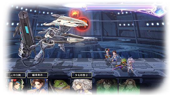 战斗则采用了回合制模式,以主力4人 + 替补2人构成队伍,战斗中可以随时进行换人,被替换掉的英雄将下场进行持续的回复。并且,组成一队拥有相同特性的英雄,释放必杀技时将发生更高的伤害以及不同的演出效果。看似简单的战斗,根据阵容搭配以及策略的不同,会有千差万别的变化。
