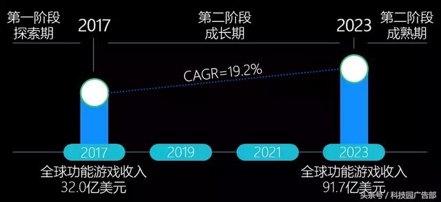 中国移动游戏开发者开始尝试从解决现实社会和行业问题的角度出发,系统性探索与发掘”功能型移动游戏“的社会效益。“功能游戏”通过独特的功能性,解决“病理康复”、“科学普及”、“理工锻炼”、“弘扬传统文化”等,让生活融入游戏,让游戏解决生活难题。例如普及中国传统文化的《榫卯》、《折扇》,提升理工能力锻炼的《欧氏几何》,有助于研究病症的《海上英雄探险记》,以及普及交通安全知识的《驾车高手》 等作品,都通过与社会生活的结合改善民生,预计2023年全球功能游戏市场规模或将达到91.7亿美元,2017-2023年的年度复合增长率为19.2%。