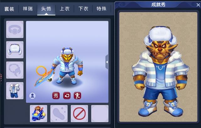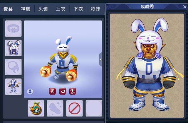 其实,虎头怪玩家也可以很萌很帅气。比如上图这套坏坏小兔帽(头饰)、王牌选手(衣服)搭配石器时代(武器)的组合,不仅能完美展示虎头怪强壮的身材,还具备兔头、烤肉等萌点,非常适合撩妹玩家使用。
