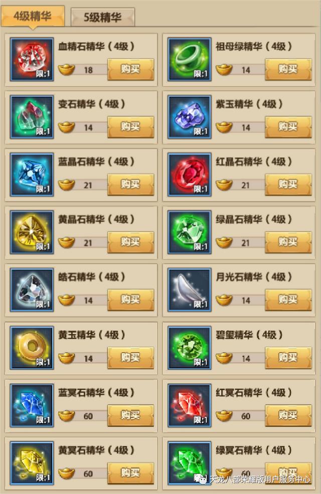 活动期间,侠士可在活动页面购买4级或5级的宝石精华,每个商品限购一次。
