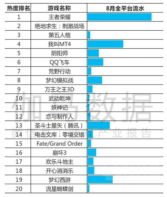小编从网上拿到8月手游收入排行版,其中腾讯拿下50%,网易占据25%。虽然说王者荣耀一直被唱衰要凉凉,但是腾讯爸爸推出个新皮肤随随便便就赚个几亿,例如后羿的圣斗士星矢。