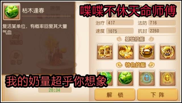 玄奘虽然是一个奶,但是该有的样子攻击还是有的,那就是传说中的语言杀人术-叽叽歪歪,攻击力不高,但是攻击范围可达6人,同时降低目标伤害。而作为大奶,治疗更是不容落下,一个技能推气过宫,回复我方6个角色血量,强大的辅助力量,令任何人都不能忽视。