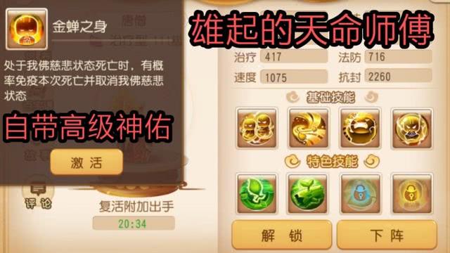 大家好,我是九命,欢迎来到九命的《梦幻西游手游》助战解析篇-喋喋不休的天命师傅雄起:唐玄奘!唐玄奘在《梦幻西游手游》中官方定位为辅助助战,侧重于加血,算是五个天命取经人中比较正常的人选了,加血还是比较给力的!