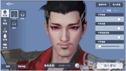 另外选择角色后还可以进行捏脸,捏脸方面的细节也是非常之多,各个部位都能够进行替换,于是小弟决定捏一个风流倜傥的脸型,像这样。