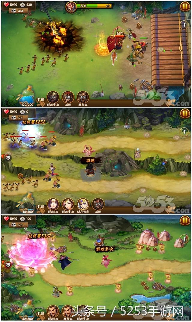 类似例子举不胜举,譬如三流武将程远志的“大冰雹”战技,虽然威力一般,但却能够延缓敌人行动,且冷却时间极短,前期非常好用;又比如二流武将司马朗的“狮灵破”战技,能够召唤出灵兽突袭敌军,并使目标眩晕;再如三流武将陈到的“突石”,在杀伤敌兵的同时还能短暂阻挡其前行……这些武将虽然整体实力不如一流武将,但其战技在塔防战中十分好用,只要我们摸清他们的战技特性,然后将其派驻至相应的防御塔内,与防御塔的特性完美结合,就能发挥出惊人的杀伤力。如此,即便是没有一流武将,我们也能在塔防战场上谈笑风生,挥手湮灭百万敌军。