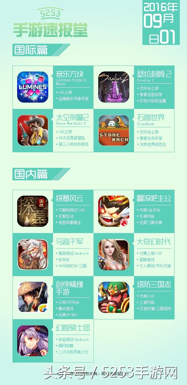 每日手游大小事,新鲜猛货一锅端!最新手游资讯、新游抢先曝料、每日开测信息尽在5253《新游速报》。