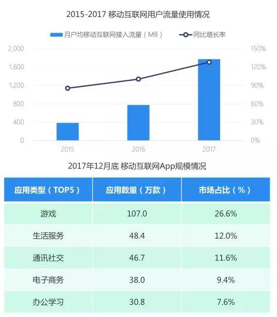 在“提速降费”、4G普及、应用丰富等利好因素影响下,各行各业全面拥抱移动互联网时代,并深化移动互联网与人们日常生活的融合,游戏、社交、手机支付、网购、共享单车等迅速地改变着人们的生活。