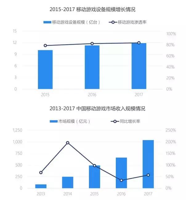 得益于Html5游戏、微信“小游戏”、游戏直播、移动电竞、手机支付等生态的完善,移动游戏用户规模保持稳定增长,在整体移动互联网中的渗透率超过80%,并推动移动游戏市场收入规模进入千亿时代。