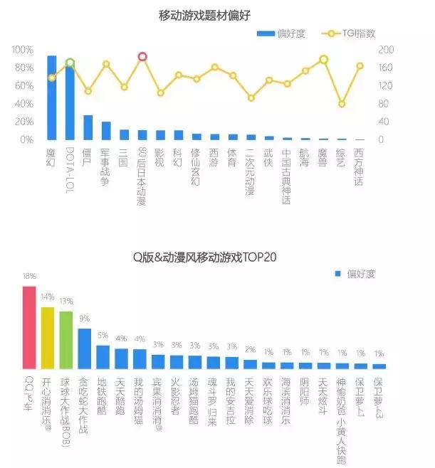 热血汉子同样拥有柔情的一面,在DOTA-LOL、魔兽、魔幻、军事战争等游戏题材之外,他们也钟情于80后日本动漫题材游戏,Q版以及动漫风格的作品,例如《QQ飞车》、《火影忍者》、《魂斗罗:归来》等移动游戏则让其倍感怀念。