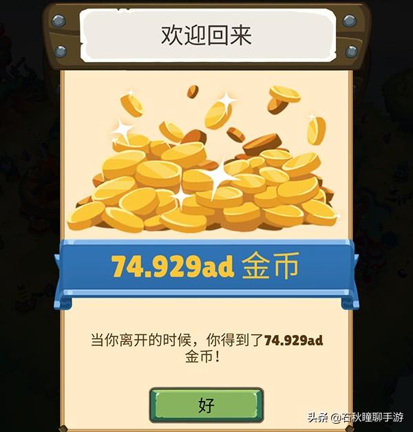 最后就是线下收益了,每次下线再上线,都会根据你当前的等级来计算收益,获得金币。这也是放置玩法的老套路了。