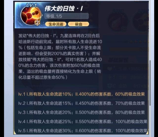日蚀第一阶段可造成全体30%生命值的伤害,生命流逝的意思应该就是无视防御,直接砍掉30%的血量,并且生命上限也会被减少,有效克制了那些很肉的斗士,10万血量挨个大招下来生命上限就变7万了,是不是可以这样理解?