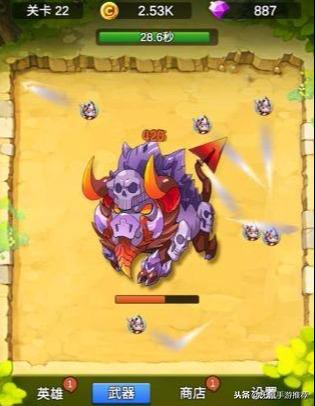 游戏的养成点比较简单,金币可以用来强化武器,钻石可以用来增加英雄的数量和洗练武器的属性。金币的获取比较简单,打怪即可,强化武器不但可以增加英雄的攻击力,还可以增加属性。每过五十关都可以解锁一个新的武器,每把武器还有自己的特殊技能,有触发旋风斩的,有触发横向激光,还有触发竖向激光的。