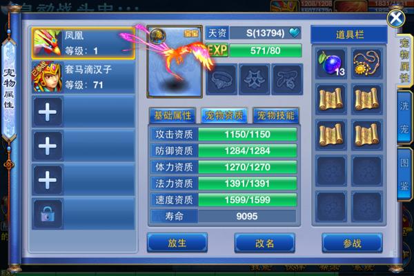 技能选择上高灵性,高法爆必备,银币不充裕情况下,法连可以用低级的。没有生存能力的法宠站上两回合以上的可能性很小,所以高震慑也是性价比极高的技能。至于高法波,属于几率提高法伤技能,有格子有能力情况下就上吧,低法波不建议打。