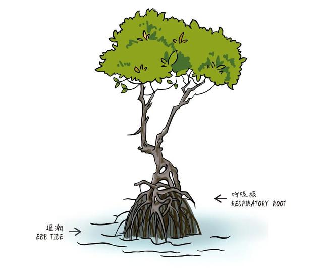 为抵御潮水的冲刷,机智的红树植物派出了英勇的支柱根,牢牢地抓住地面,形成稳固支架,使其在风浪中屹立不倒。同时让部分根暴露出土,背地向上生长,形成形态各异的呼吸根。看名字就知道,这种根主要是帮助植物在氧气缺乏的环境更好的呼吸的。根中有发达的通气组织,表面还有皮孔,可以帮助生长在热带海岸或沼泽地带的一些植物适应厌氧环境(不含氧气的环境)。