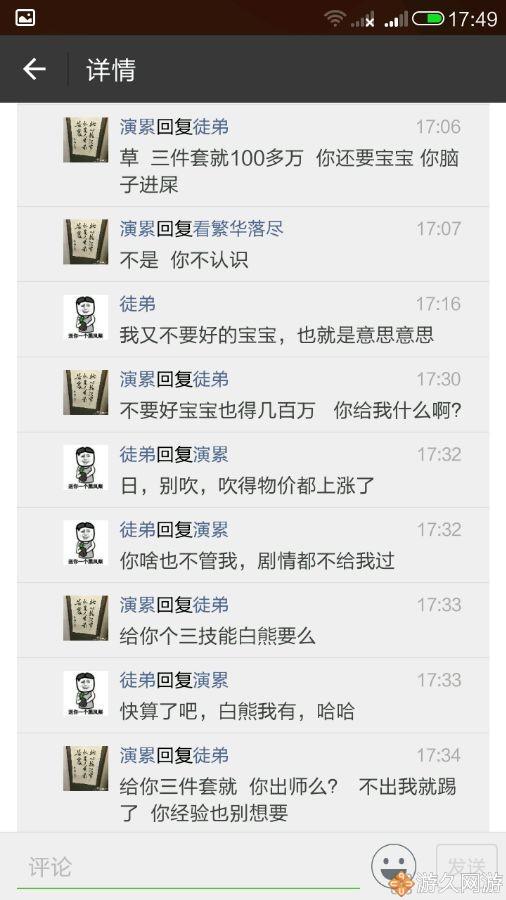 好心的我心想别什么不要,我就说出师给他60级的普渡三件套,有空的时候给过过剧情