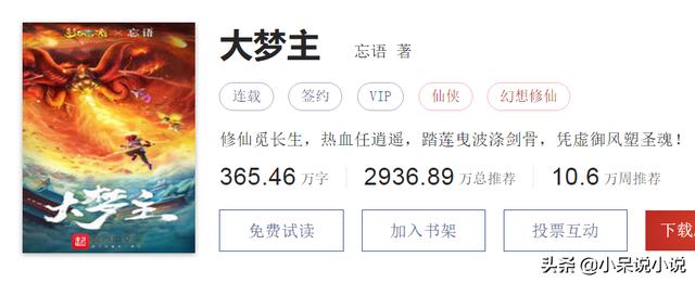要说网文界的白金大神,晋升最快的当属作者忘语了吧,一书封神,位列网文界“五大至尊”!开创“凡人流”修仙小说体系,但后继乏力,被书友调侃为写啥都像《凡人修仙传》,之后的书都不曾大火,直到《大梦主》的出现,再次把忘语送回了网文巅峰!