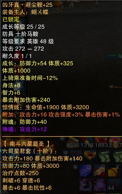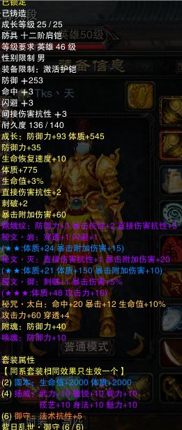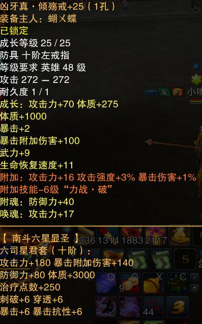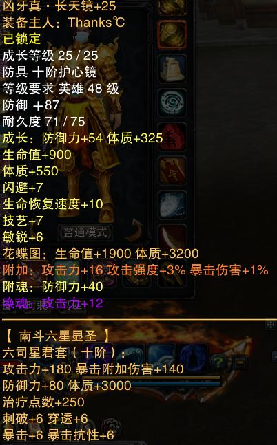 攻击下限12550攻击上限14450,现在只能勉强算是超顶,打对面的顶套有点吃力,打一般翅膀盘子还是绰绰有余。防御7540,如果是奶多且固定也比较优秀(很多情况奶并不多而且还不固定)。直抗83间抗80爆抗76,在顶套中也只有直抗算是达标,间抗勉强合格,爆抗已经落伍。但是对比一般25套来说已经算是优秀,对照原来这帐号的主人和原来这个账号的辉煌历史,我感觉这个号已经落伍。刺破68有一张暗金刺破卡片(如果出了祖籍刺破效果,那秒任何号估计压力都不大),还有的话估计是原来打榜称号,强度209和普通25没有大的区别,爆伤270也不算是亮点。