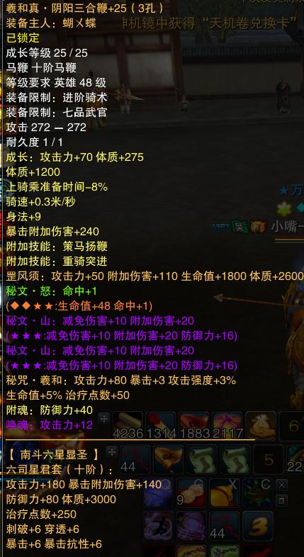 这期的这位战神账号已经改名为Tks`天,现在这位战神账号算是赤壁顶套里的底子号,毕竟这个账号前面几位大神也是舍得投入,而且赤壁近几年也没有啥大的改动,也就是增加了天命和图鉴罢了。原来最早对于这个账号也只是在视频中感受过强悍的操作和属性。直到这号转服到虎踞,才近距离的体会到这个账号的变态,曾经有一个视频,现在已经无从查找,当时这个号带着小楼系列几个奶,在石家村二百人规模的一个多小时战斗中,只死亡一次,全程硬抗现在杀生丸,当时赤壁第一打手阿佳号,赤壁第一内涵傀儡号,还有改完名字的自由派路人(大名鼎鼎风啸号)等等。这个经典的视频谁如果还有可以给我留言,我去保存一下。