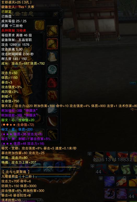 附魂无暗金,唤魂两个金色攻击加17,武器附魂攻击加80,唤魂攻击上限207。图鉴评分7714,赤壁排名23名。