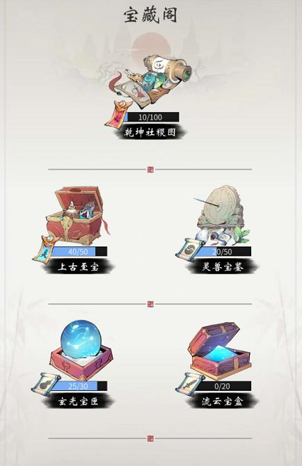 无论你是升级了神通、还是鉴定了灵兽......,都能领取到"天机石"和"宝藏阁的碎片"。而这两个物品都可在宝藏阁兑换到稀有的秘药、古宝以及藏宝图等十分难得的宝贝。