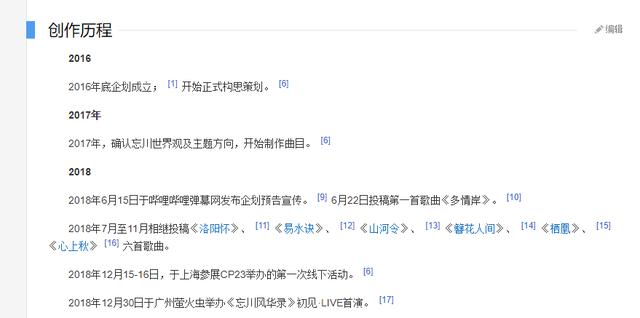 到现在,所有线索都捋清楚了,再回过头来看忘川音乐企划百度百科里的时间线,加上上述推测,不难得知: