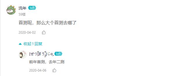 在TapTap忘川手游的论坛,官方发布的第一条帖子里,59楼有个用户回复了这么一句话“前年首测,去年二测”。2020年的前年,便是2018年。