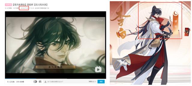 左:《洛阳怀》视频里出现的角色,右:忘川手游官网的李白立绘