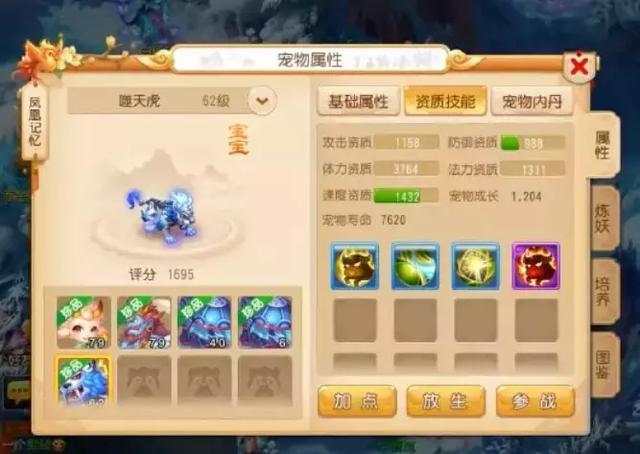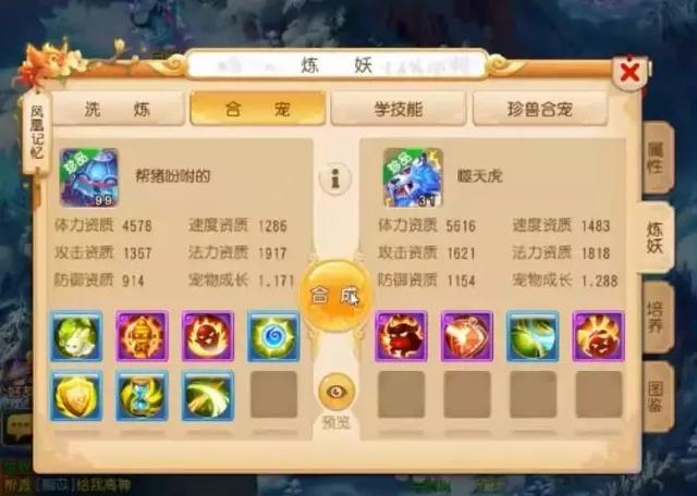 合宠的另一个宠物是4技能的壁垒噬天虎,资质和成长同样也很优秀,准备好我们就开始合宠吧。