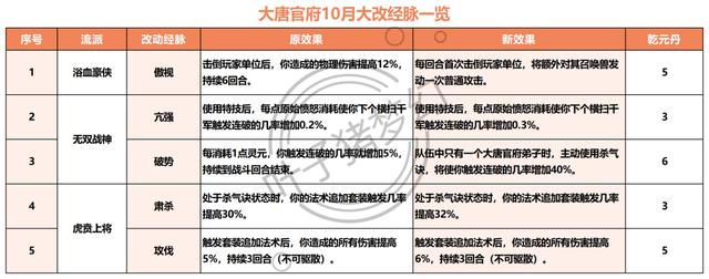 大唐官府的调整比较简单,“浴血豪侠”流派在点了【傲视】经脉后,只要击杀对手人物单位,就能对被击倒人物的召唤兽普攻一次,清宠能力极强!其他两个流派主要提高了主动使用“杀气诀”和“杀气诀”状态下的流派效果,“无双战神”流派可以提高连破几率,“虎贲上将”流派可以提高套装伤害。