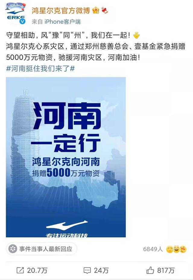 不过话说回来,河南洪灾,捐款的企业并不少,为何偏偏鸿星尔克就火了呢?