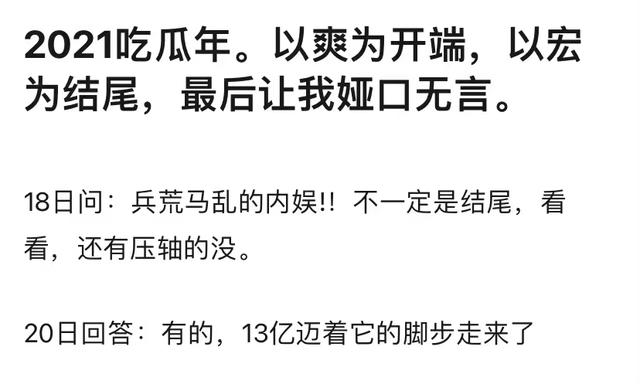 2021年年初,连环大瓜从天而降,郑爽代孕弃养、华晨宇张碧晨承认未婚生子…为吃瓜之年打下了最初的脚注。