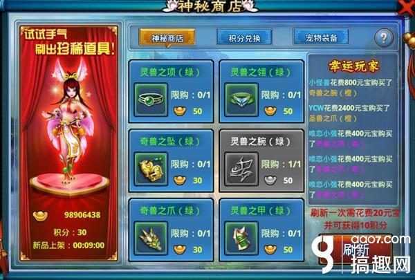 使用元宝刷新商品还可获得神秘商店积分,累积足够的积分后可以在神秘商店内直接兑换高品质的装备。