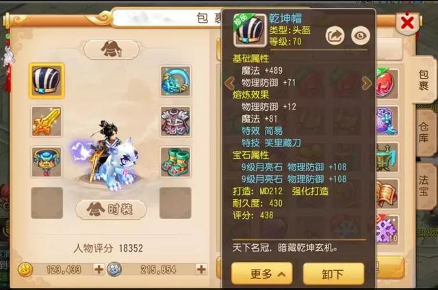 双蓝字的70级头盔,简易+笑里藏刀,熔炼过后物理防御也近满值了,还有两颗9级月亮石的物防加成。这时灵儿才注意到,他这一身装备都是70级的,那他岂不是一身简易了?灵儿突然很期待后面会看到哪些特技呢。